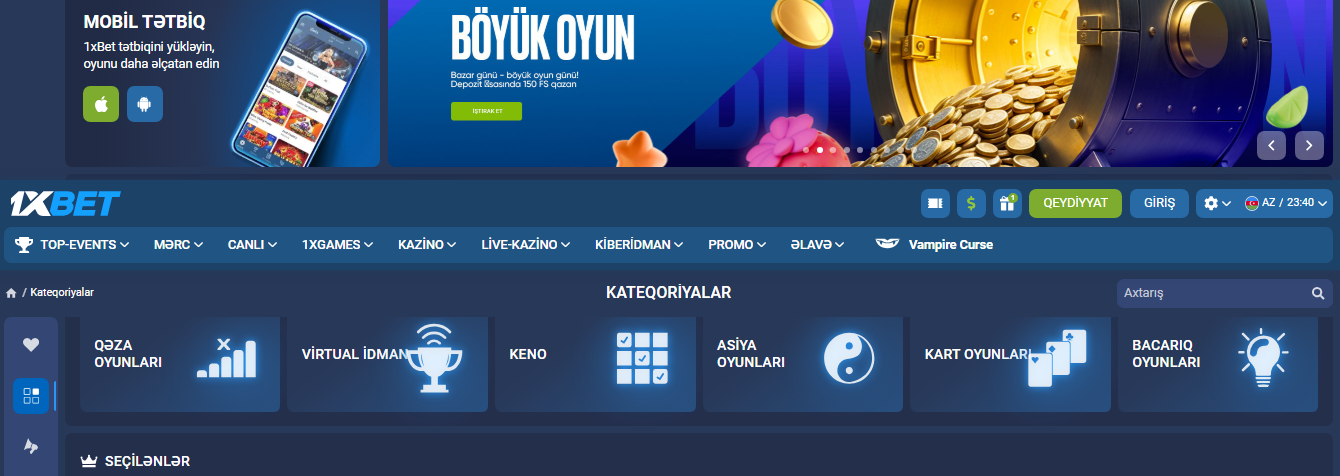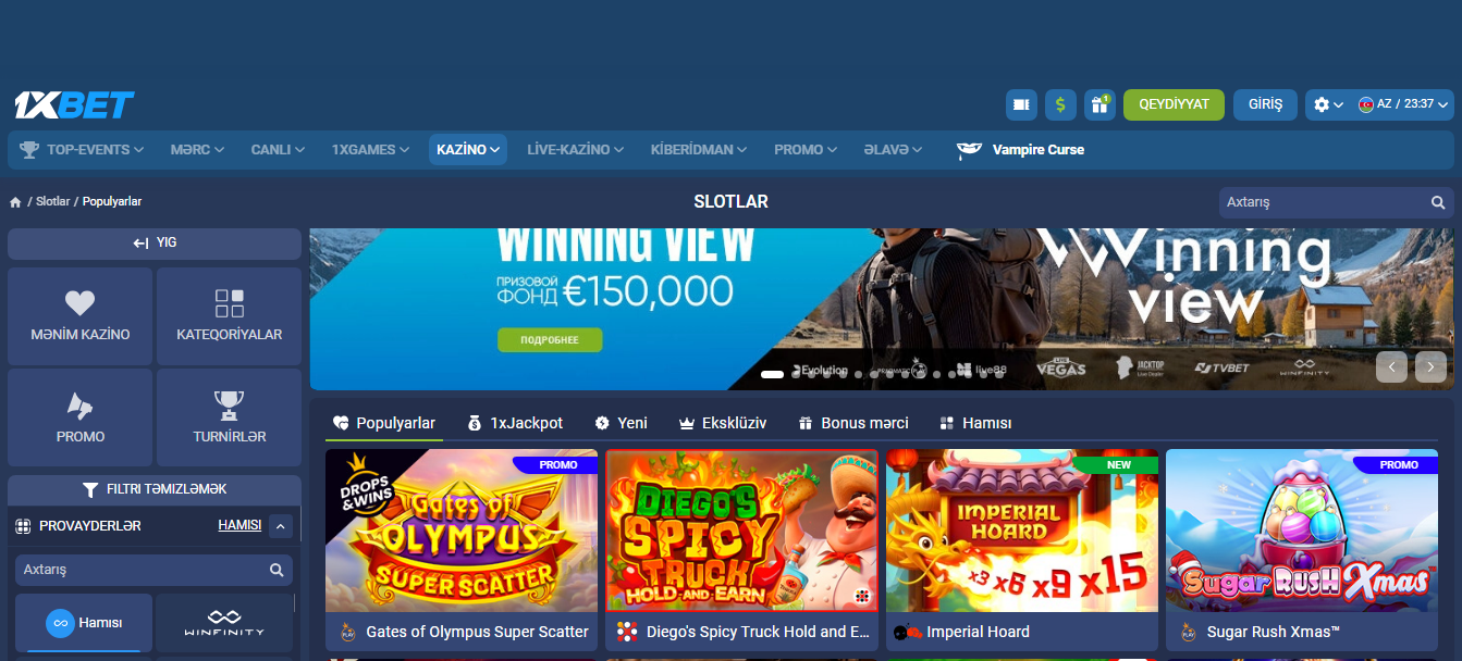 1xBet onlayn kazino platforması Azərbaycan oyunçularının ehtiyacları nəzərə alınaraq formalaşdırılmış müasir və rahat oyun mühiti təqdim edir. Geniş slot seçimi sayəsində istifadəçilər fərqli mövzulara, oyun üslublarına və risk səviyyələrinə uyğun yüzlərlə oyunu asanlıqla tapa bilirlər.